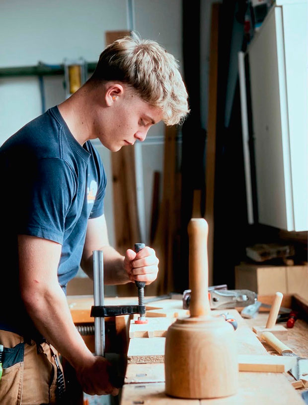 – Det er netop det at skabe noget konkret, der motiverer mig. Man kan starte med et helt almindeligt stykke træ og forvandle det til noget, folk bruger hver dag.