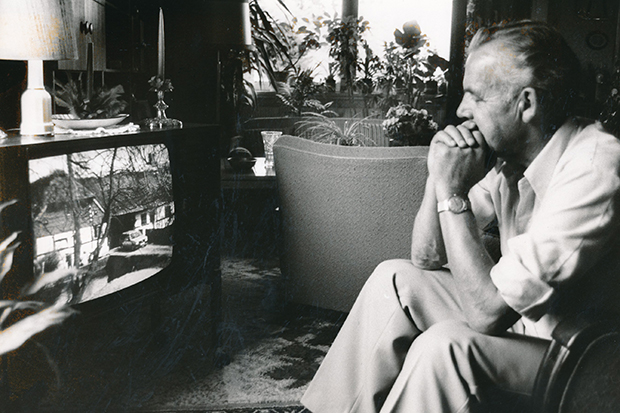 - Postbud Kaj Bjørk ser den færdige udsendelse i tv. Foto: Faxe Kommunes Arkiver.